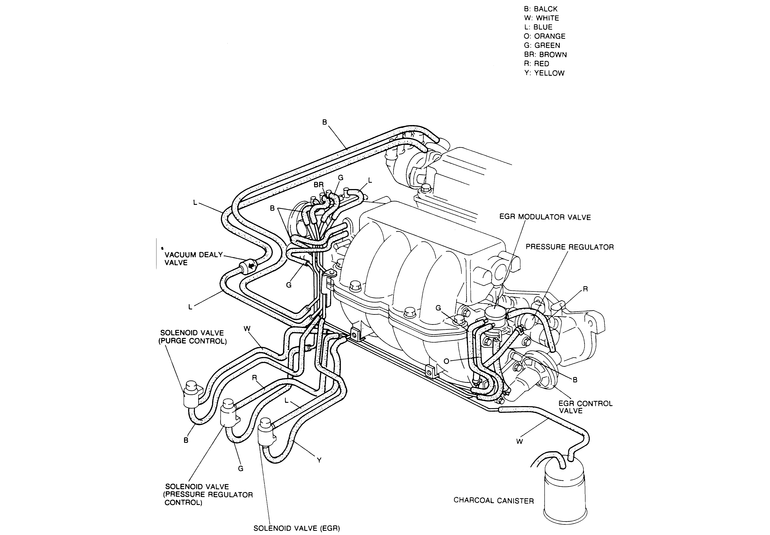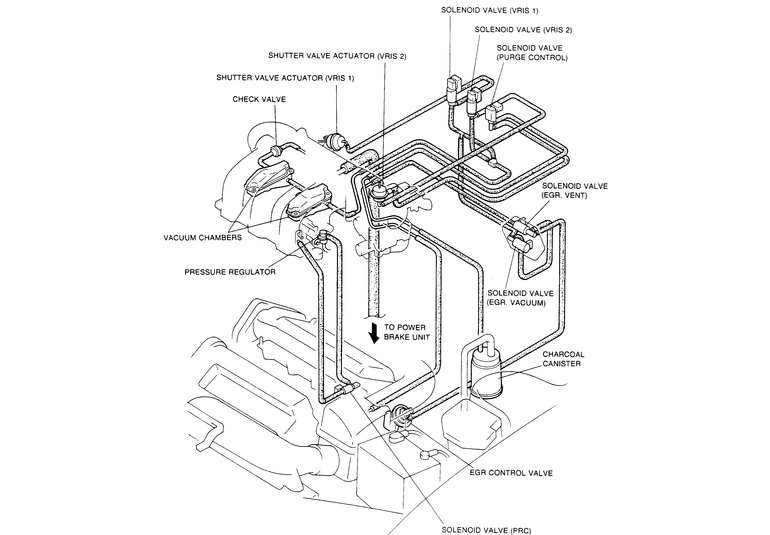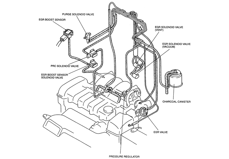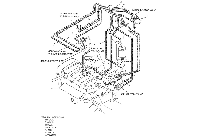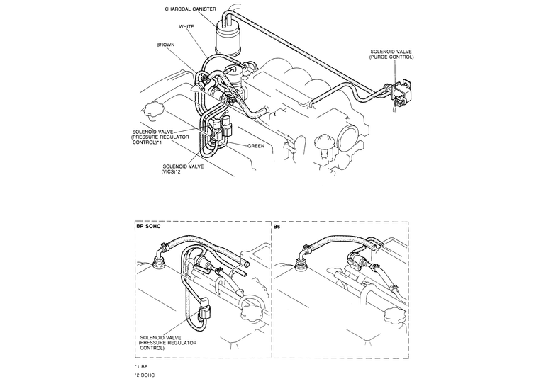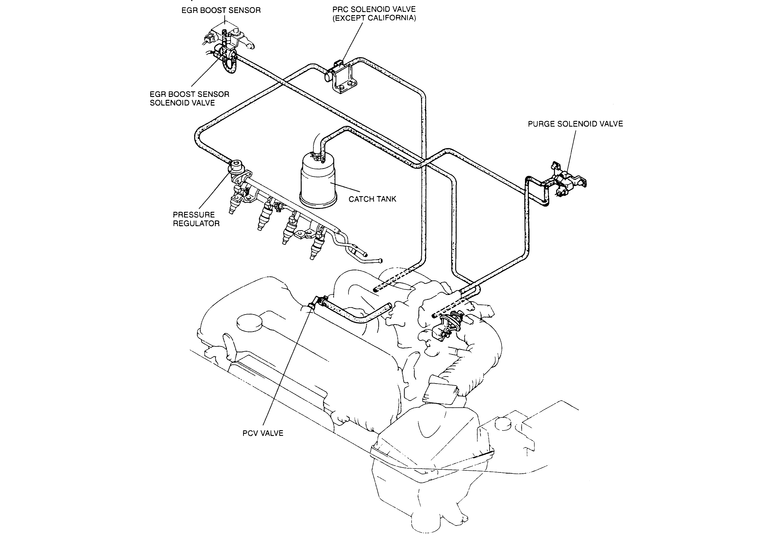 Fig. 6: Vacuum hose routing diagram for the 1990–92 626 and MX-6 non-turbo |