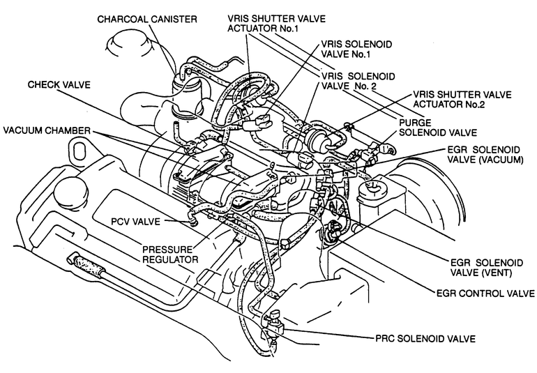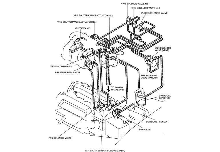 Fig. 2: Vacuum hose routing diagram for the MX-3 with 1.6L DOHC engine |