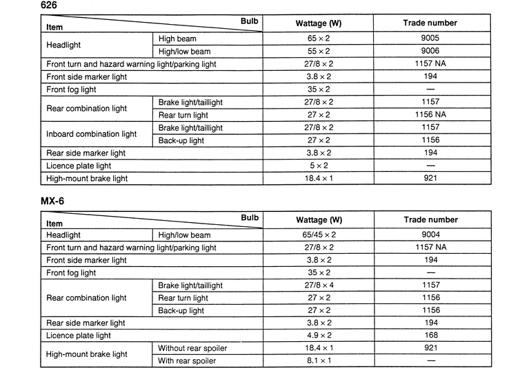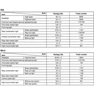 | Fig. 1: Light bulb chart for the 1990–94 323 and Protege |
