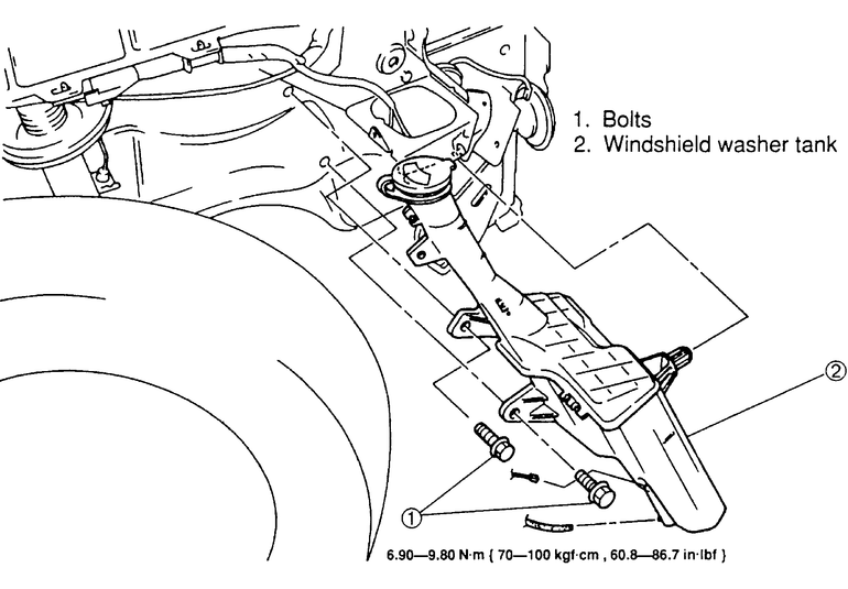 Disconnect the electrical connector and the hose from the washer reservoir.