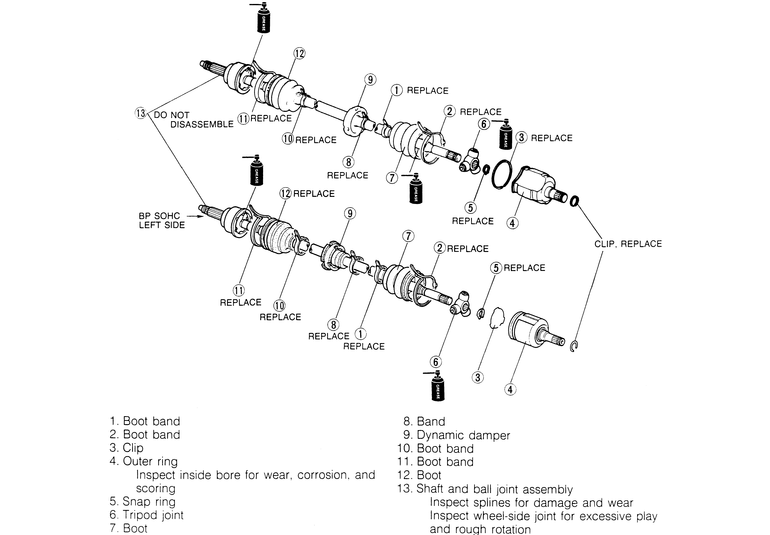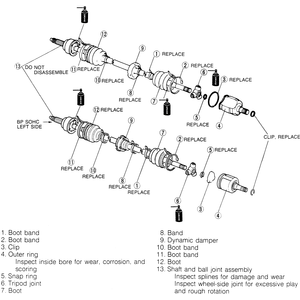| Fig. 1: Exploded view of the halfshaft assemblies |