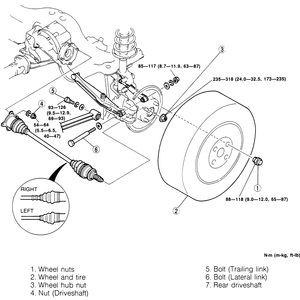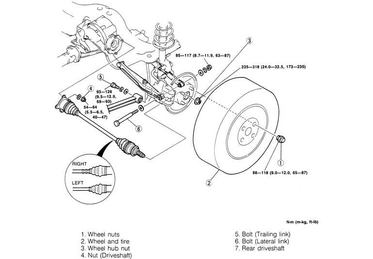 the trailing and lateral links. Torque the trailing link bolt to 58–56