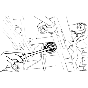 - Disconnect the lateral link from the rear axle hub by removing the through