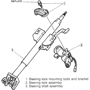 mounting bolts. Remove the bolts and the steering lock assembly.