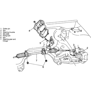 - Remove the cotter pins from both steering tie rod ends and remove the nuts.