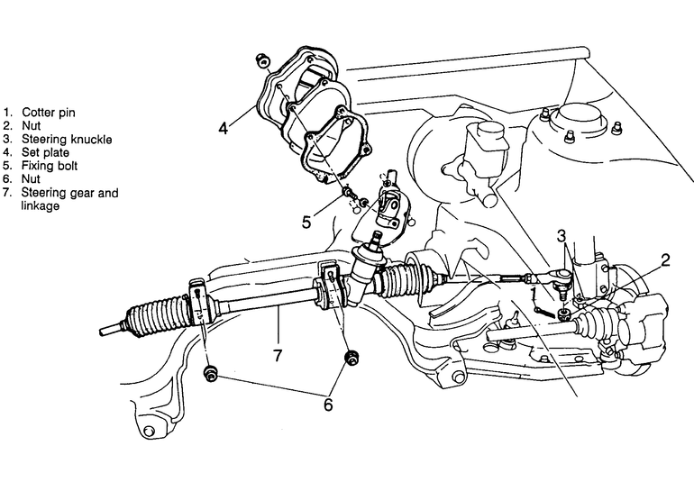 - Remove the steering gear mounting nuts and remove the steering gear to the