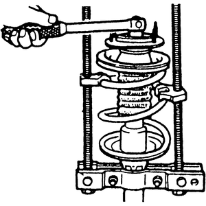 | Fig. 3: Use a coil spring compressor and relieve