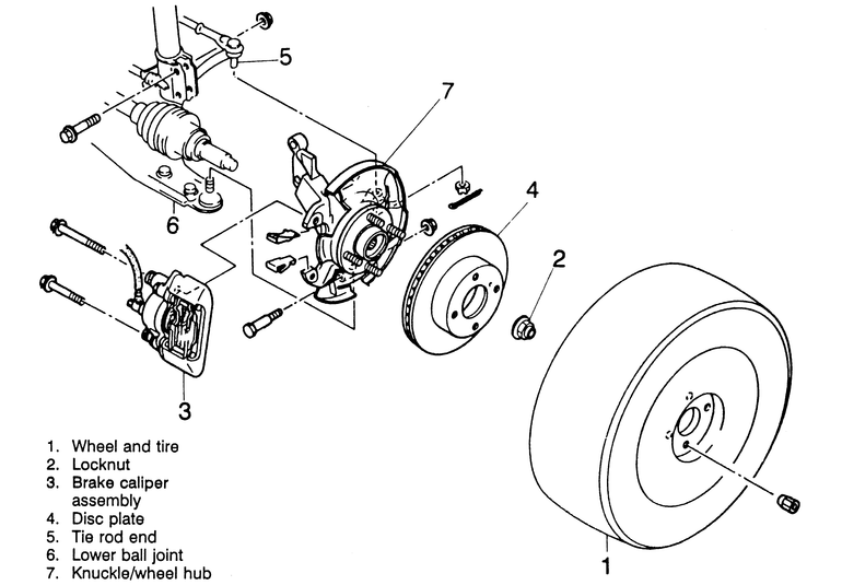 Remove the front wheel hub and steering knuckle as an assembly.