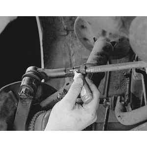 | Fig. 3: Remove the tie rod end nut cotter pin . .