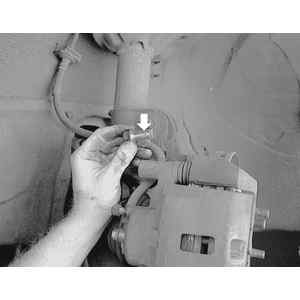 | Fig. 5: Lift the caliper from the knuckle and support