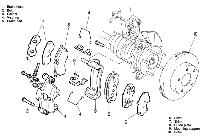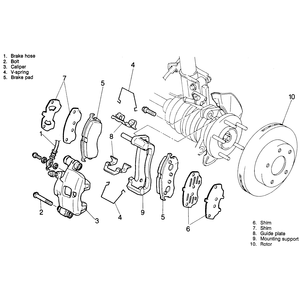 | Fig. 1: Exploded view of the front brake caliper mounting |
