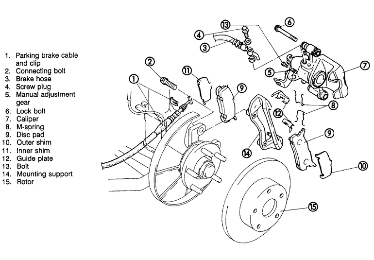 | Fig. 2: Common rear disc brake caliper mounting |