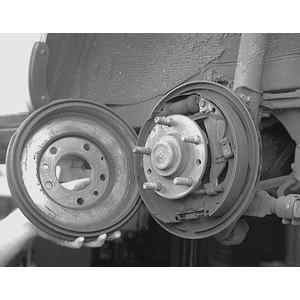 Pull the brake drum outward to remove. If the brake drum is difficult to
