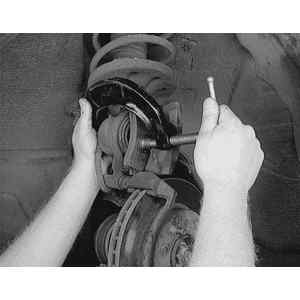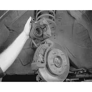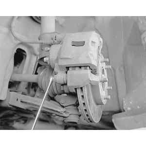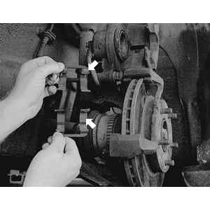 | Fig. 5: Rotate the caliper upwards to access the pads