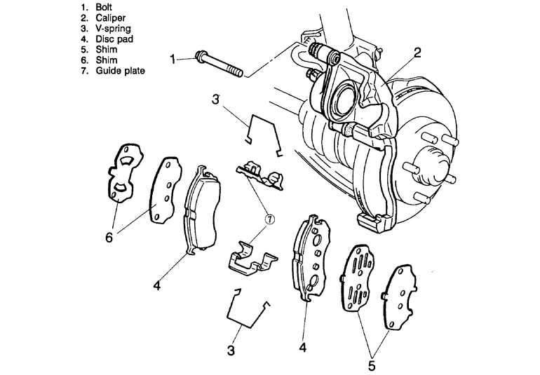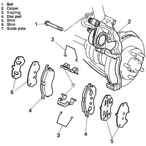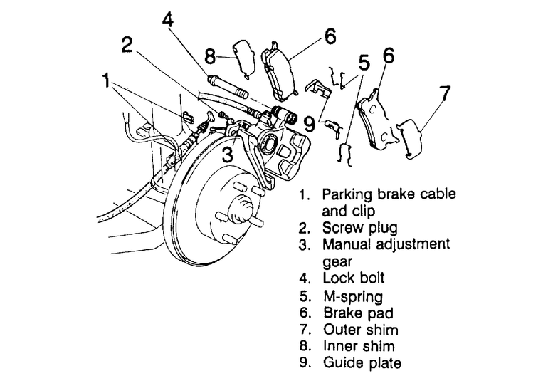 | Fig. 2: Exploded view of the rear disc brake pad components |