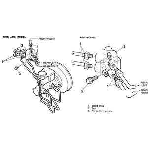 Label and disconnect the brake lines at the proportioning valve.