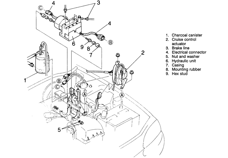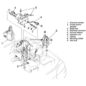 If removed, install the cruise control actuator and the charcoal canister.