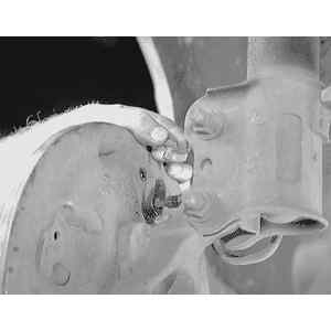 | Fig. 6: Remove the wheel cylinder and gasket from