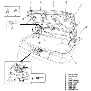 | Fig. 1: Exploded view of a typical hood mounting |