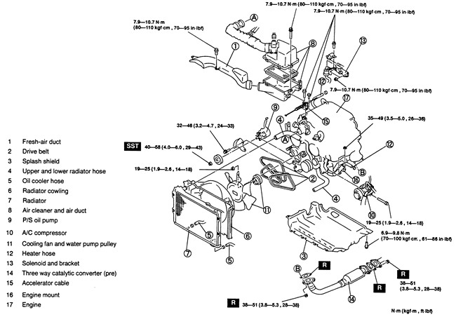 Right engine mount bracket nuts to 56–76 ft. lbs. (75–104 Nm)
