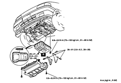 Subframe transverse section. Tighten the bolts to 69–96 ft. lbs.