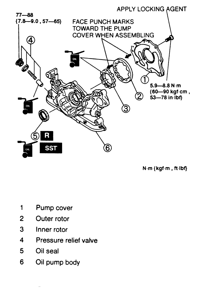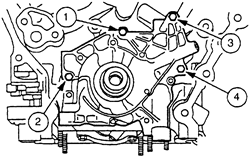 Oil pump. Tighten the bolts in sequence to 71–106 inch lbs. (8–12 Nm).