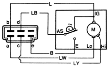 | Fig. 6: Windshield wiper motor terminal identification and continuity check — B series pick-ups |
