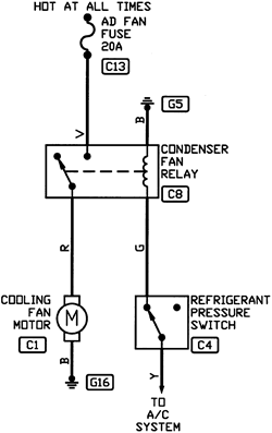 If the cooling fan functions properly during this test, proceed to the cooling fan relay test.