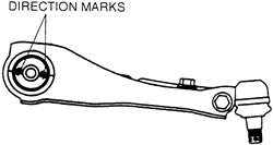 - Mark the control arm to indicate the alignment of the rear bushing as shown.