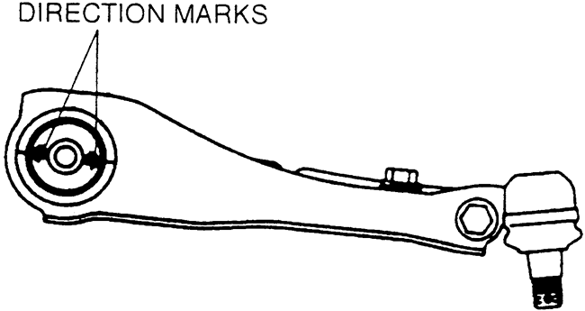 | Fig. 1: Rear bushing direction mark — 1997–98