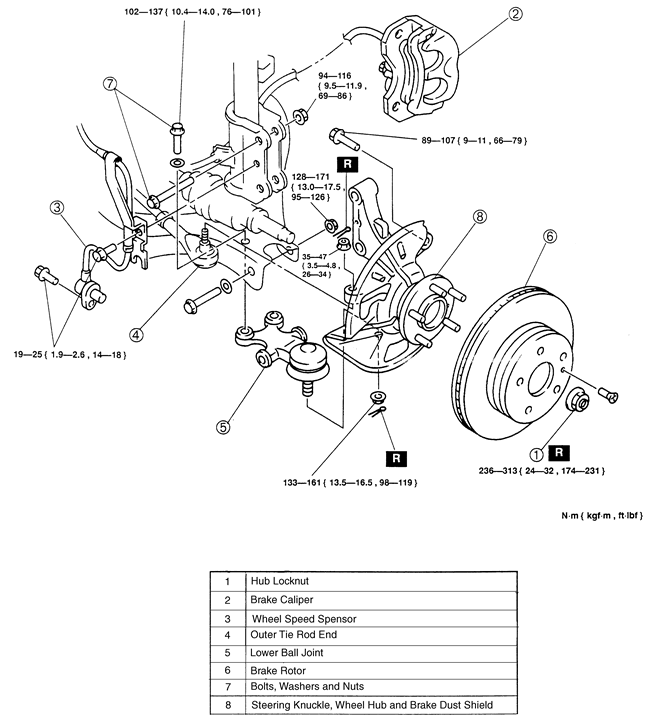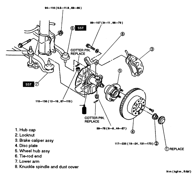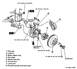| Fig. 1: Exploded view of the front hub and related components — 1997–98 2WD MPV |