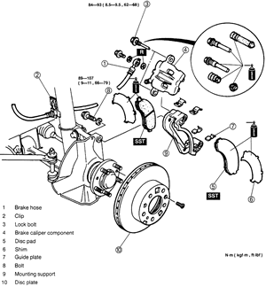 Installation is the reverse of the removal procedure. Lubricate the caliper mounting bolts or bolt and pin prior to installation.