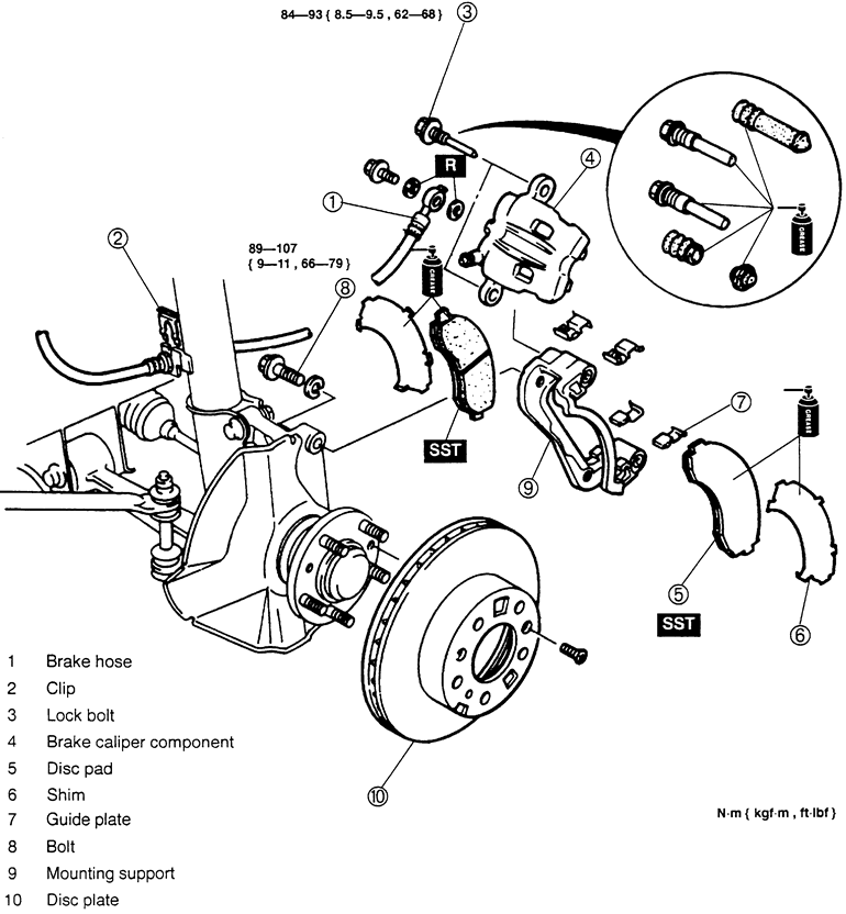 Front caliper: 61–69 ft. lbs. (83–93 Nm)