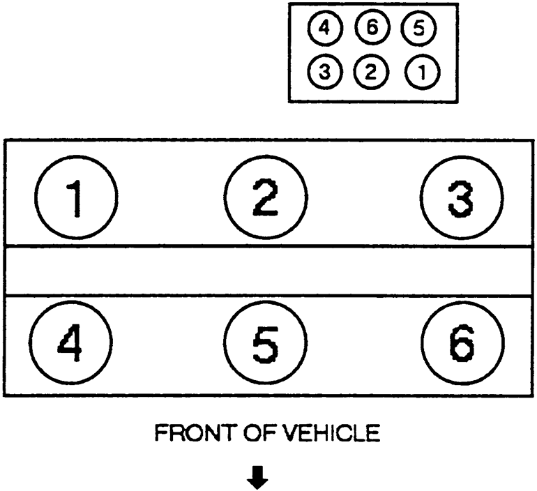 Fig. 3: 1997–98 3.0L engine Firing order: 1–2–3–4–5–6 Distributor rotation: Clockwise