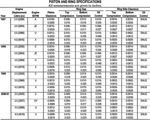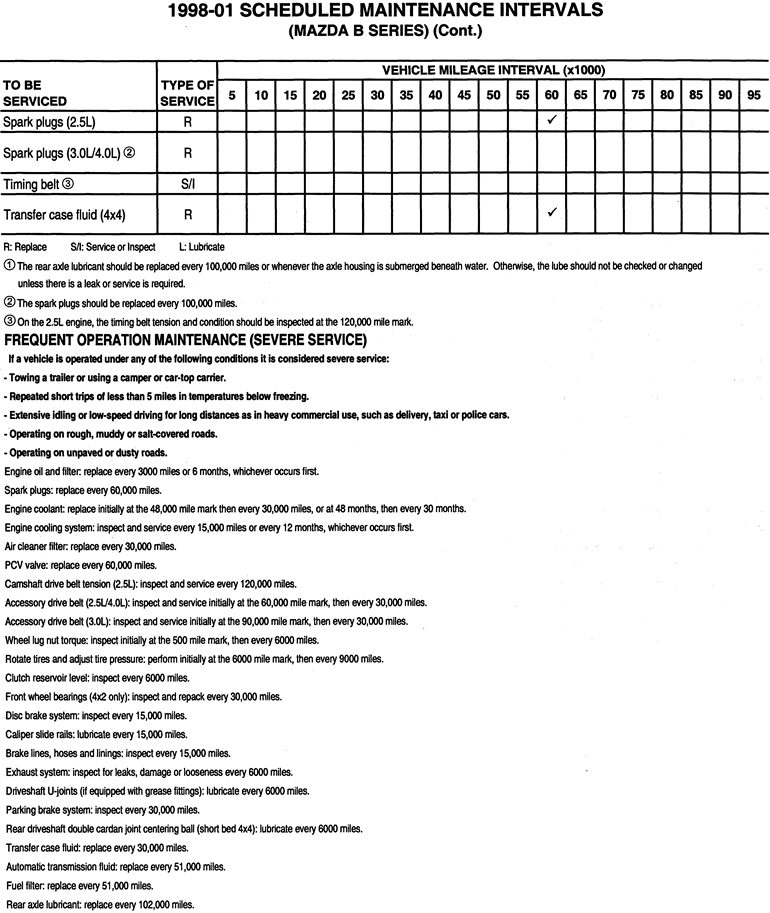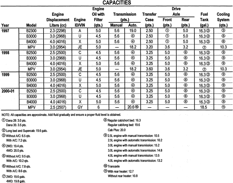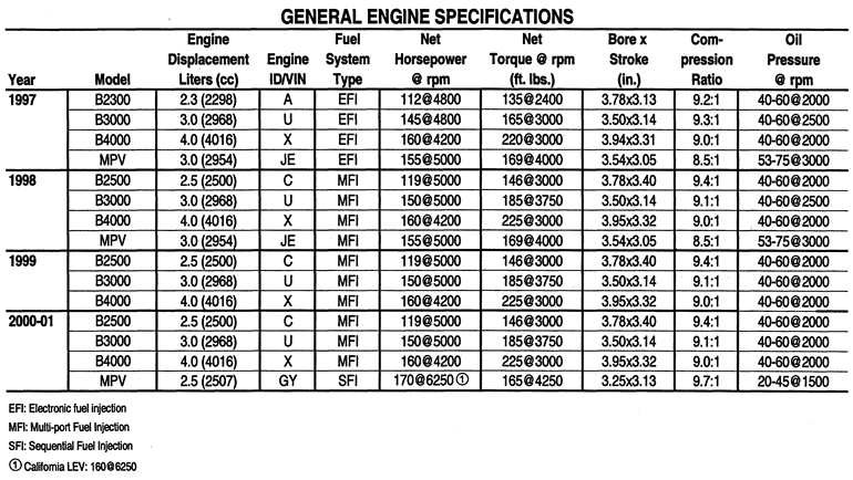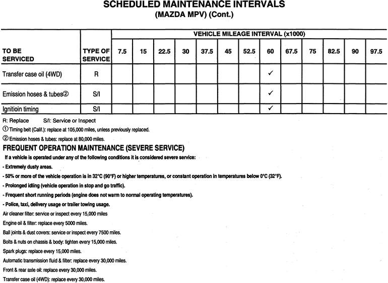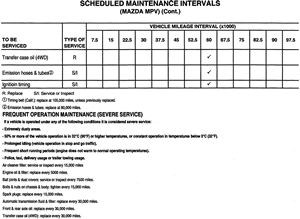 SPECIFICATIONS AND MAINTENANCE INTERVALS
