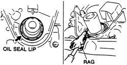 | Fig. 2: Install the seal using an appropriate driver, which fits over the crankshaft snout and presses on the outside edge of the seal |