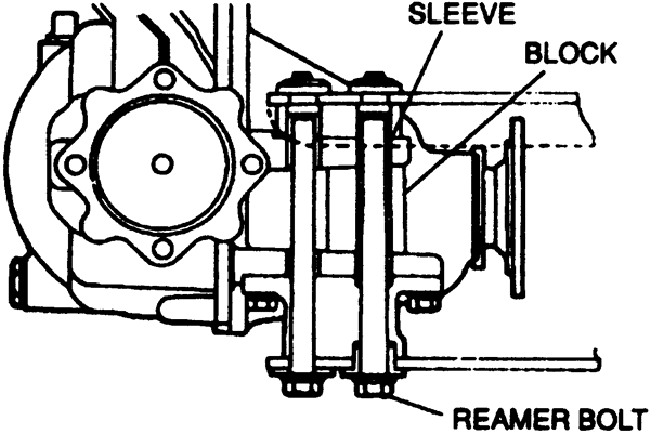 | Fig. 2: Sleeve and reamer bolt positioning — Miata with N4A-HL and NC4A-EL transmissions |
