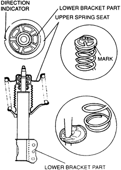 | Fig. 1: Be sure the end of the coil spring is in the step of the lower seat — 626 and MX-6 |
