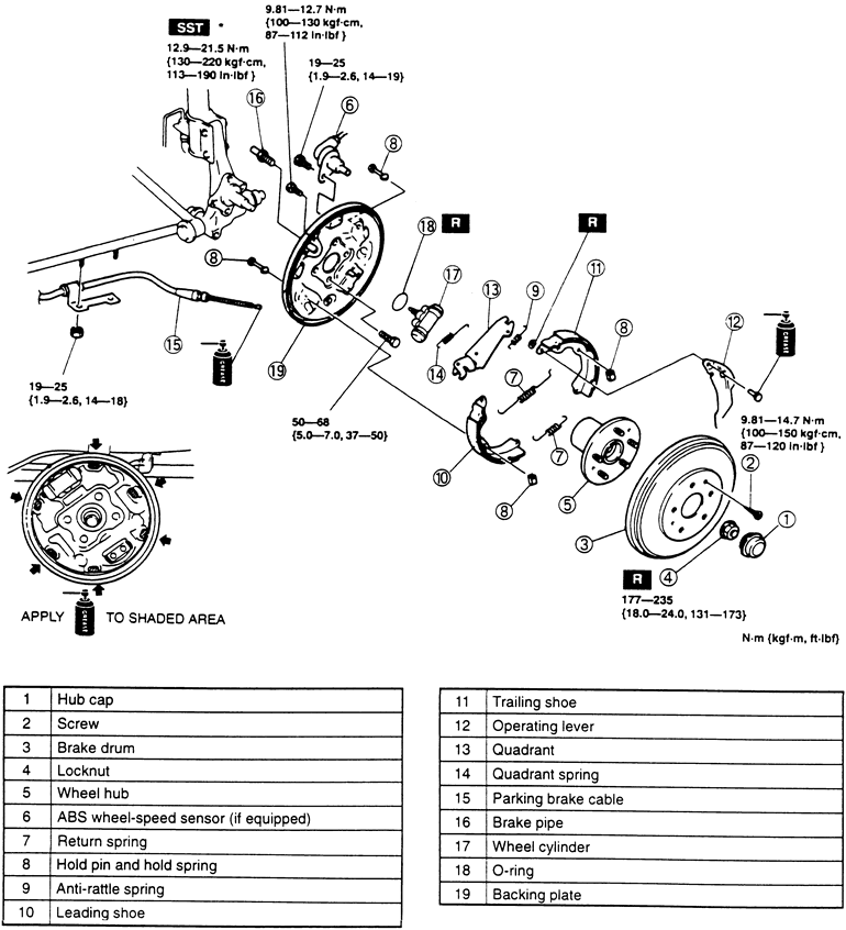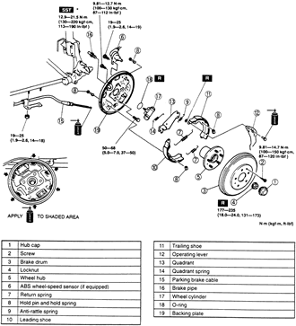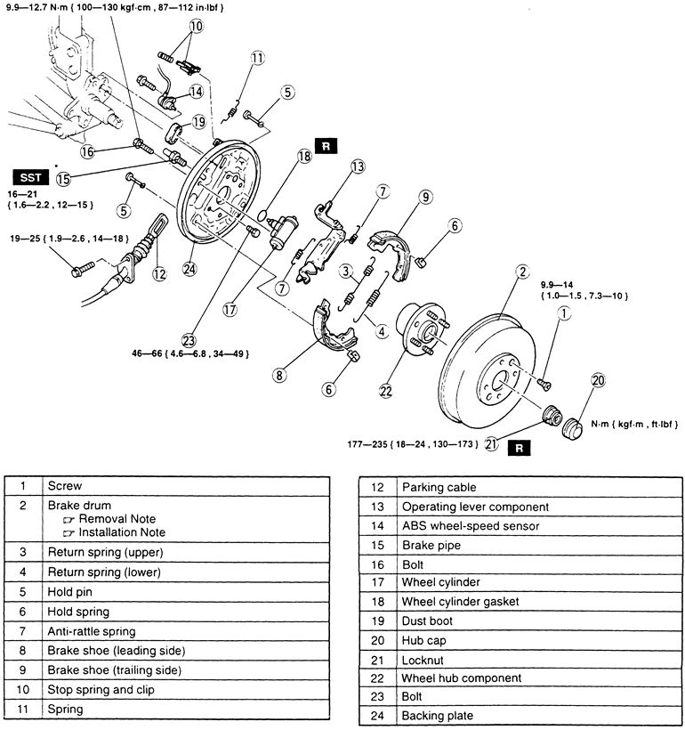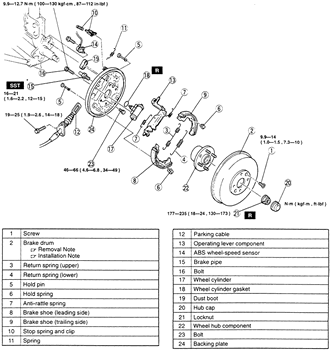 Remove the screw securing the rear brake drum, and pull the brake drum outward to remove.