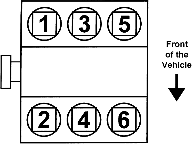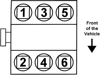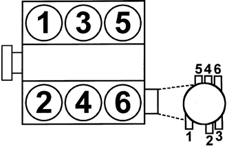 | Fig. 8: 1998–01 2.5L Engines Firing order: 1–2–3–4–5–6 Distributorless ignition system |