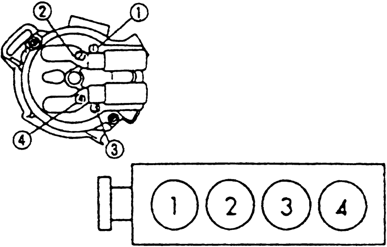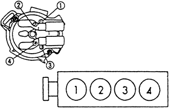 | Fig. 4: 1997 2.0L (FS) Engines Firing order: 1–3–4–2 Distributor rotation: Clockwise |