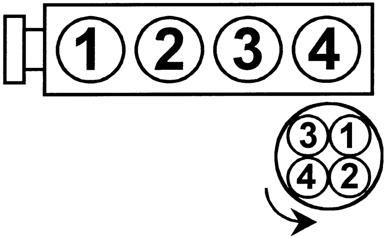 | Fig. 5: 1998–01 2.0L (FS) Engines Firing order: 1–3–4–2 Distributorless ignition system |