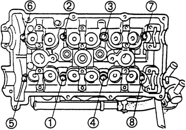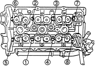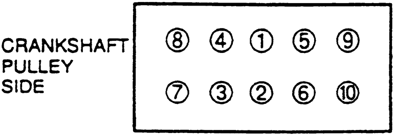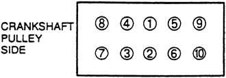 | Fig. 9: Cylinder head bolt tightening sequence — 4-cylinder engines |