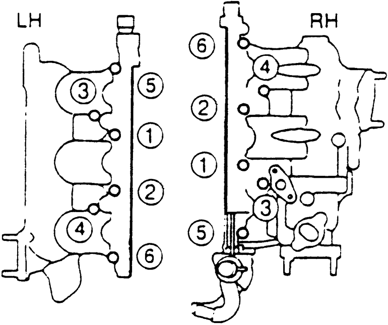 | Fig. 10: Cylinder head bolt tightening sequence — 6-cylinder engines |