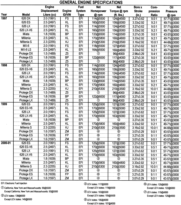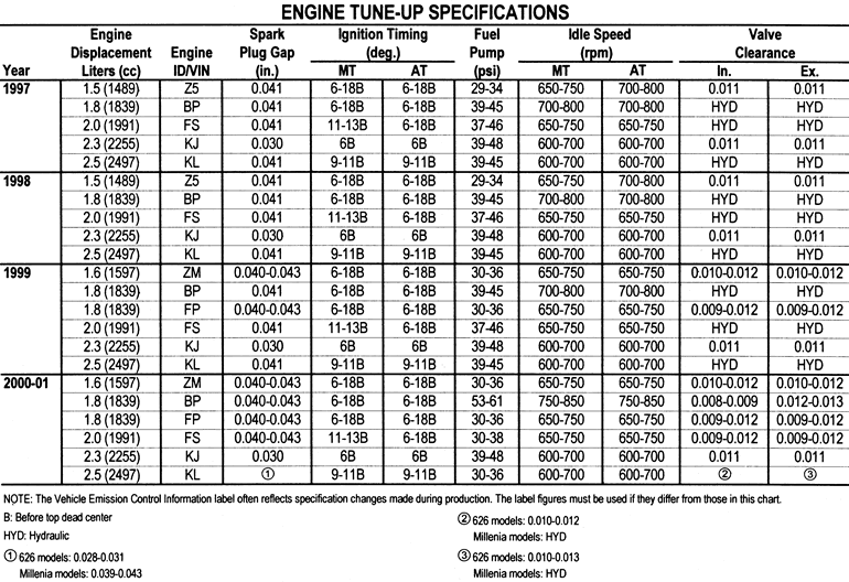 | Fig. 2: 1997 1.5L (Z5) and 1.8L (BP) Non-Miata Engines Firing order: 1–3–4–2 Distributor rotation: Counterclockwise |