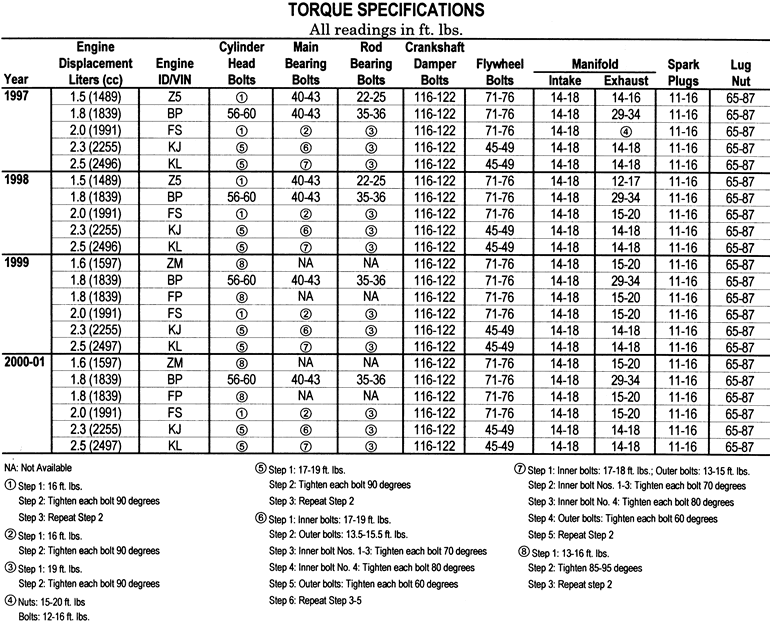| Fig. 3: 1998–01 1.5L and 1.8L Non-Miata Engines Firing order: 1–3–4–2 Distributor rotation: Counterclockwise |