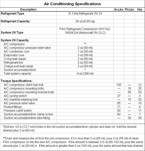 A/C Specifications