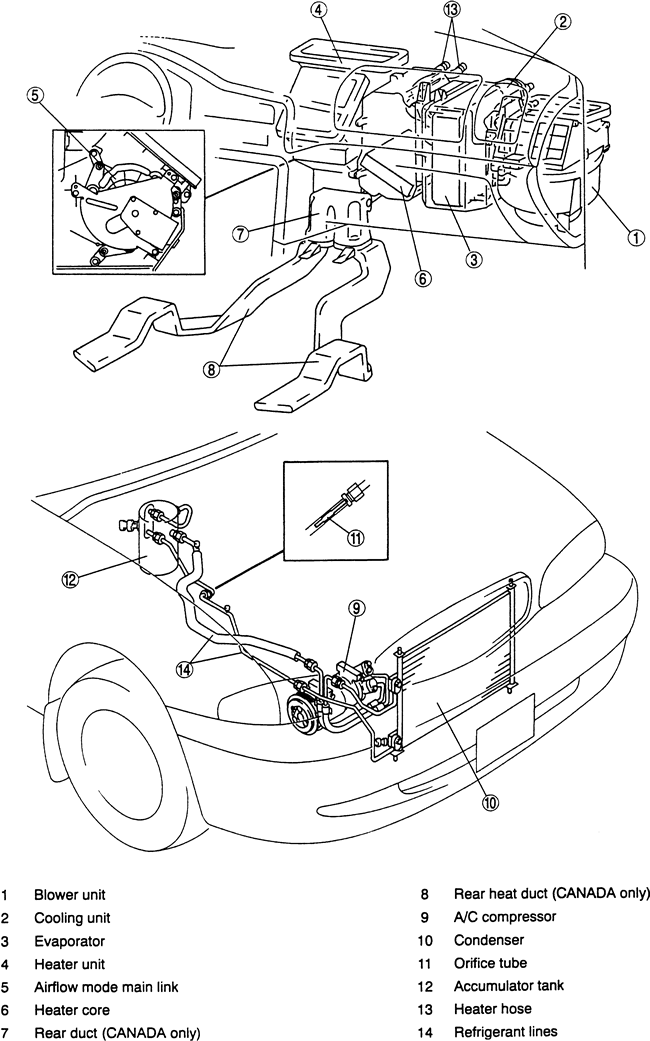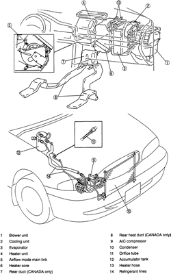 | Fig. 6: View of the heater and air conditioning housing assemblies-1998-00 626 |