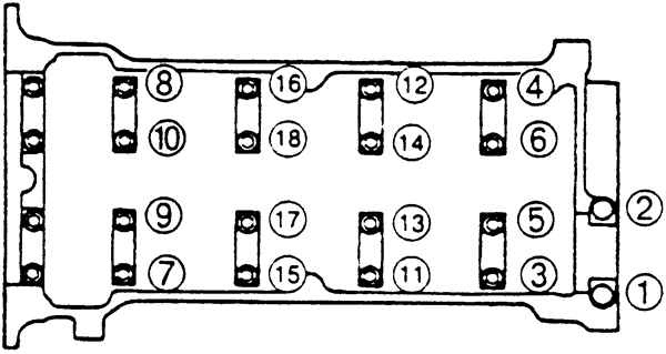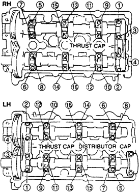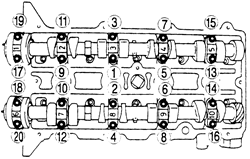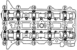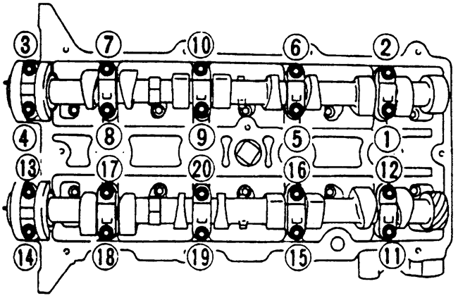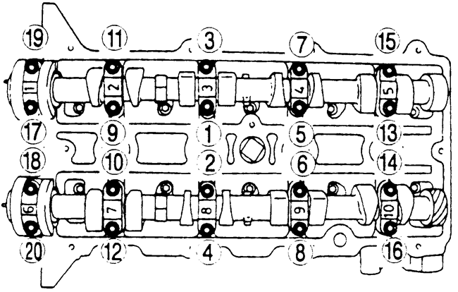 | Fig. 8: Camshaft cap bolt loosening sequence-1.6L and 1.8L (FP) engines |