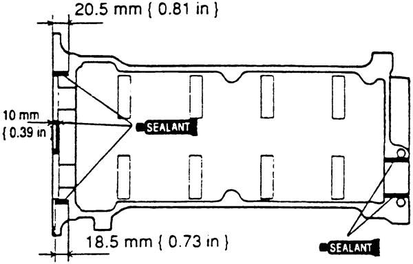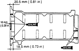 | Fig. 10: Apply silicone sealant to the cylinder head in the positions shown-1.6L and 1.8L (FP) engines |